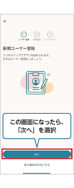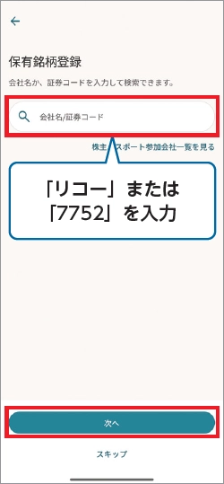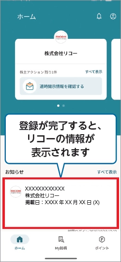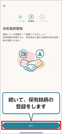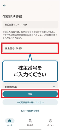 自動的に登録されない場合は、株主番号を入力し、[登録]を選択します。