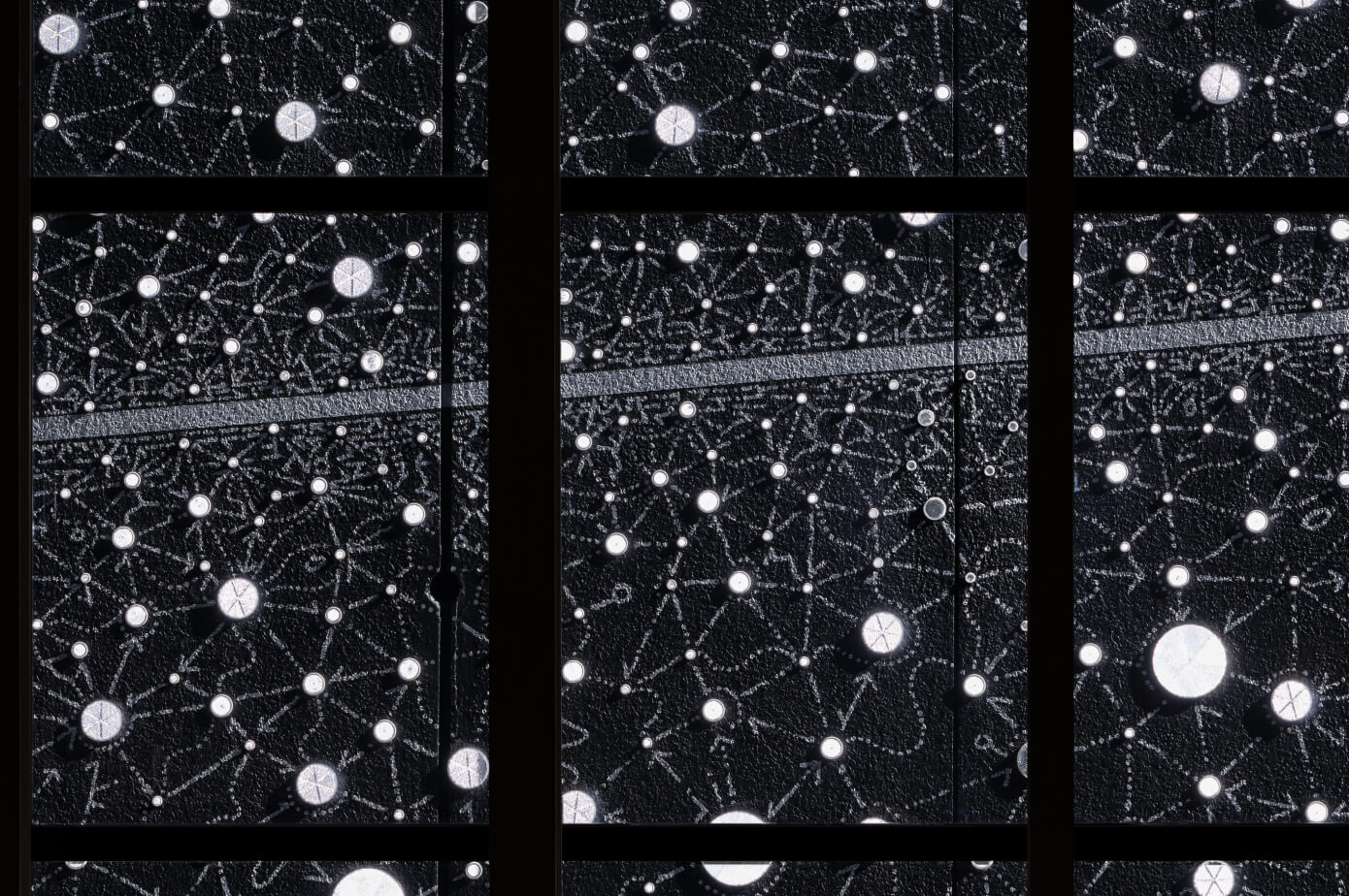 館内に張り巡らされた位置測位システム、コミュニケーションを可視化するサイネージ、出会いを加速するシェアリングテーブル、それらに連動する入退館システム、ユーザーのための専用モバイルアプリ。