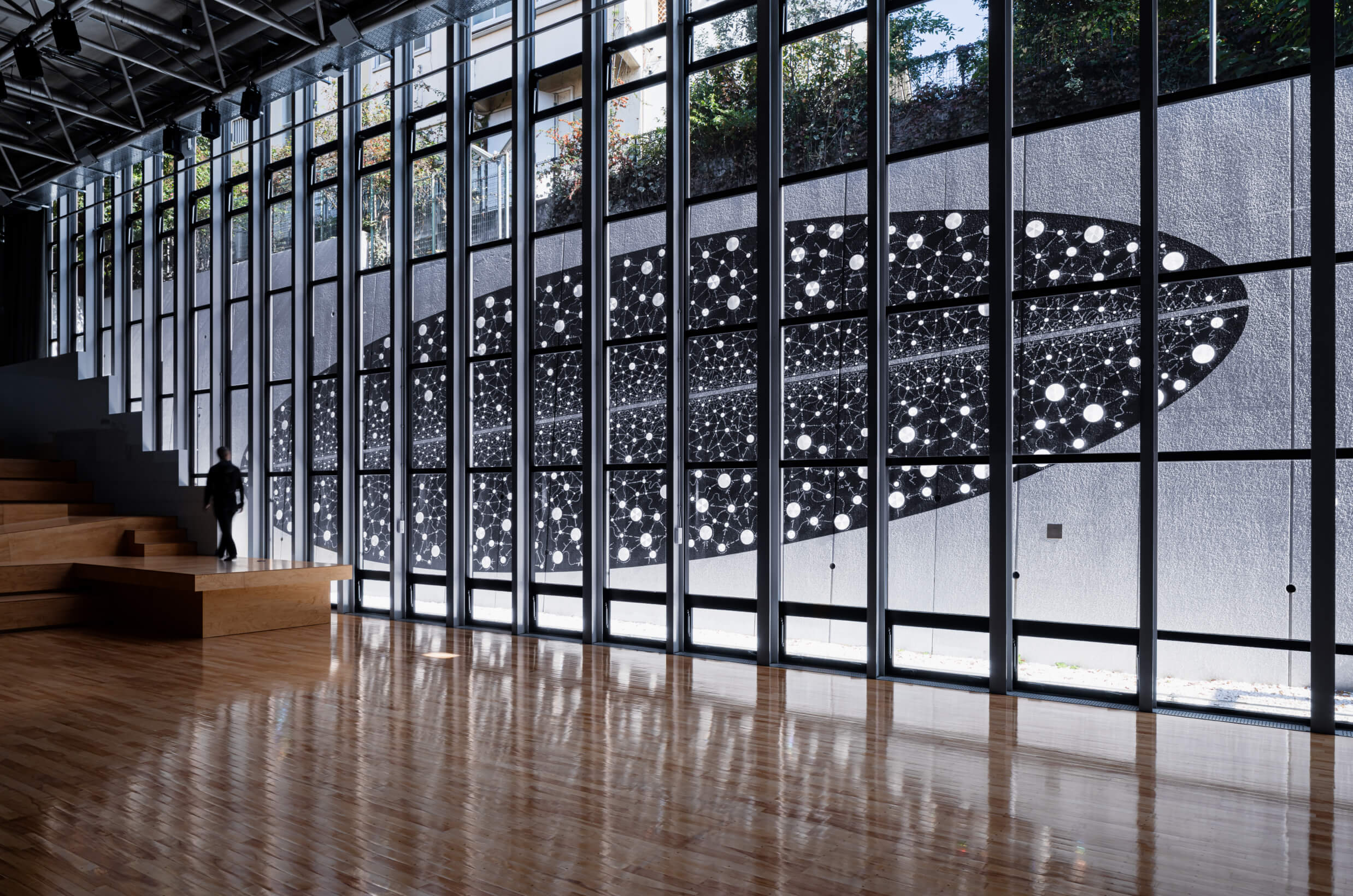 3L内に全部で5つ存在するアートは、点字が逆文字となってガラスの中に閉じ込めらています。触れることはできない点字が夕暮れや朝の光が直接あたるときにだけ、その壁に映し出された影となり、「コミュニケーション」の手段に少しだけ近づきます。