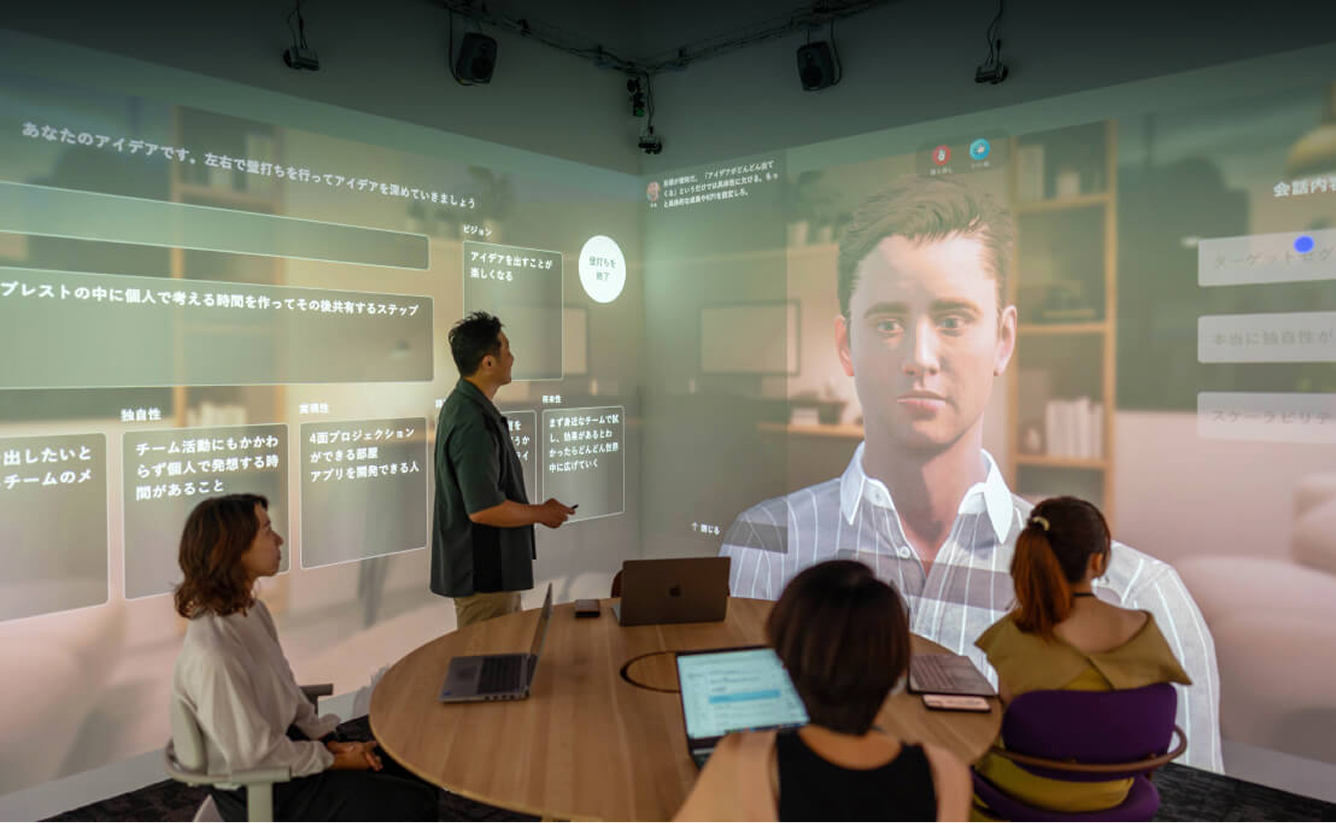 4面をプロジェクションに囲まれた空間が作り出す非日常的な体験は、チームの創造性を引き出します。
