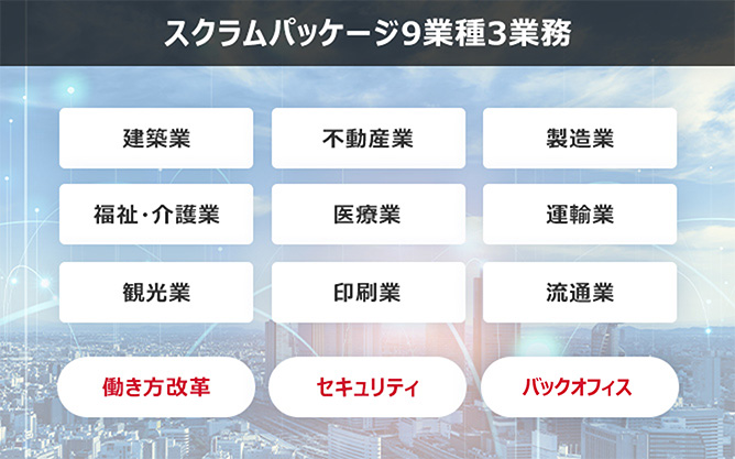 複合機や360度カメラなど独自のデバイスやソフトウェア、クラウドサービスなどを組み合わせた、中小企業向け業種業務パッケージによるDX支援