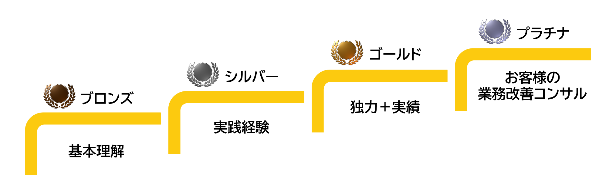 プロセスDXの実践で必要となるスキルを身に付けることができる、プロセスDX人材育成のプログラムを展開しています。初級者向けのブロンズステージでは役員を含めた社員全員が認定取得を目指しています。このステージを通じて学んだ考え方・やり方を生かして実際にプロセスDXを実践する中級者向けのシルバーステージも、ESG目標の1つとして掲げています。2025年度末までに、シルバーステージ認定者育成率を40%にする⽬標値を設けています。
