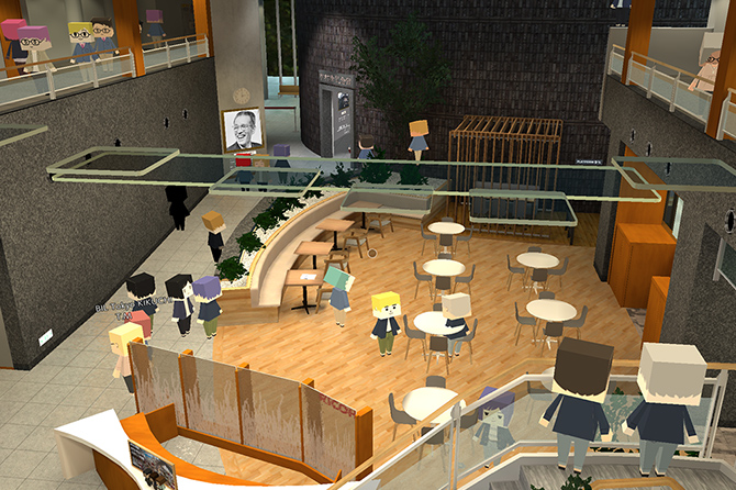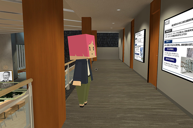 千代:コロナ禍に失われた“出社する”“集まる”という感覚を再現したかったので、記念館単体ではなく、本社事業所のエントランス部分を丸ごとメタバース上に構築し、その奥に記念館があるという構成にしました。ただ、実際に構築されたメタバースを見るまで、エントランス部分の作り込みが、これほど没入感に影響してくるとは思っていなかったです。