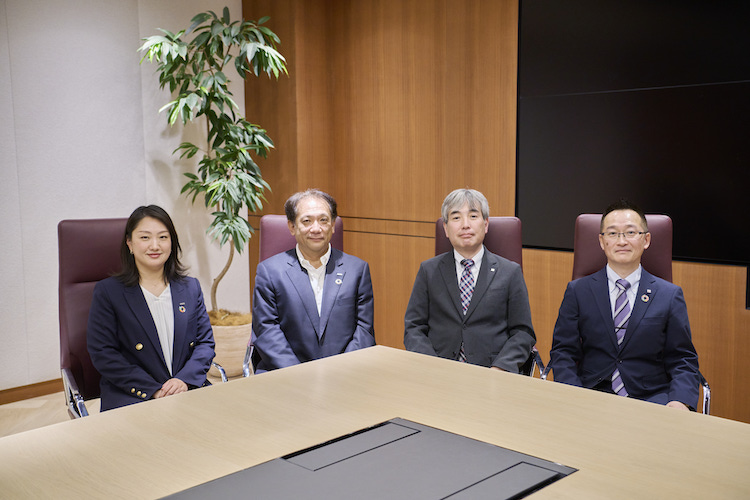 両社の共創が実現したのは、社員と経営層のコミュニケーションツールであり、会社の成長に欠かせない「三行提報」業務の効率化。RICOH BIL TOKYOで引き出された課題やリコーのAIが叶える新しい働き方について、サトーホールディングス様 秘書部長の渡辺均様、秘書部提報グループ長の近東佑美様、AIモデルの開発を担当したリコージャパン デジタルサービス技術本部の高野隆一、サービス設計を手がけたリコー AIインテグレーションセンターの大場知悟の4人が語り合いました。