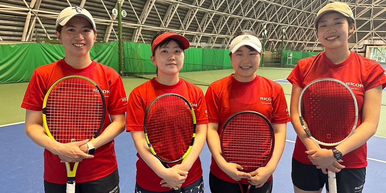リコージャパン(関西)テニス部です。メンバーは関西地区を中心に約30名で結成され、全国で上位進出を目指す選手から、健康主義の週末プレイヤーまで幅広いメンバーで構成されています。