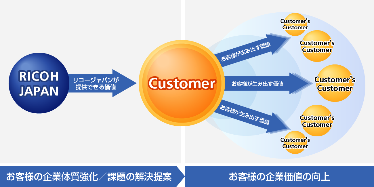 私たちは、多様化、高度化、グローバル化と激変する市場環境の中、お客様のその先のお客様からお客様に期待されていることに応えるために、お客様の経営課題をともに解決するそして、新しい価値をともに創り出すことのできるパートナーを目指しています。