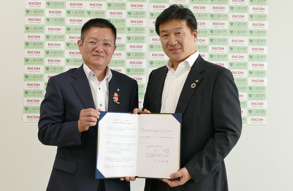 上富田町とリコージャパンが相互の人的・知的資源の活用を図り、協働して事業を展開することにより、「まち・ひと・しごと」の創生に向けた取り組みを、戦略的に推し進めることを目的とします。
