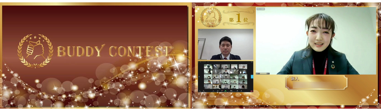 Buddyコンテストで優秀な成績を上げた新人の営業社員の表彰式(オンラインで実施)