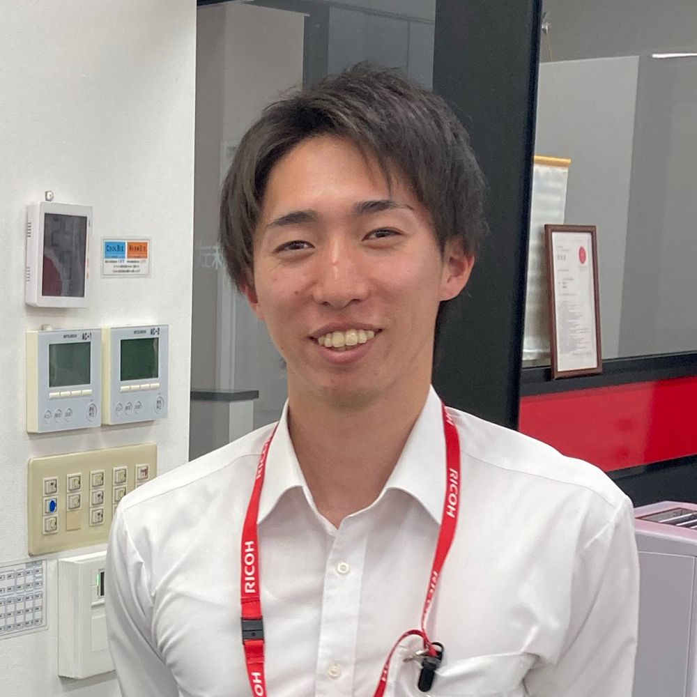 きっかけは2点、①留学先の国でRICOHという文字を発見。日本に戻り、事業内容を調べた結果「RICOHグループは世界規模で事業を展開しているんだ!」と興味が湧きました。②人と話すことが好きで、人と関わることができる営業職に就きたい。その上で就職活動を通じて、様々な人と関われてチャレンジできる環境に魅力を感じて入社を決めました。