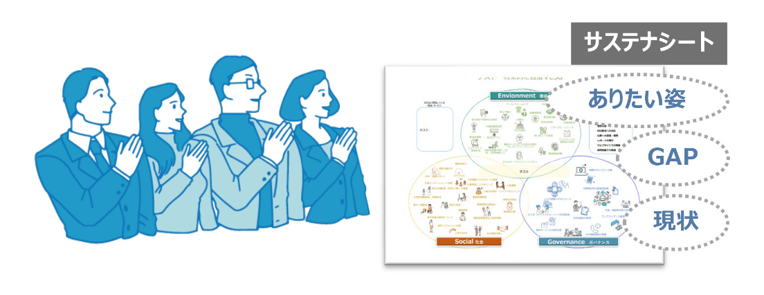 社員へMySDGs/ESG宣言のワークショップを実施(左)
