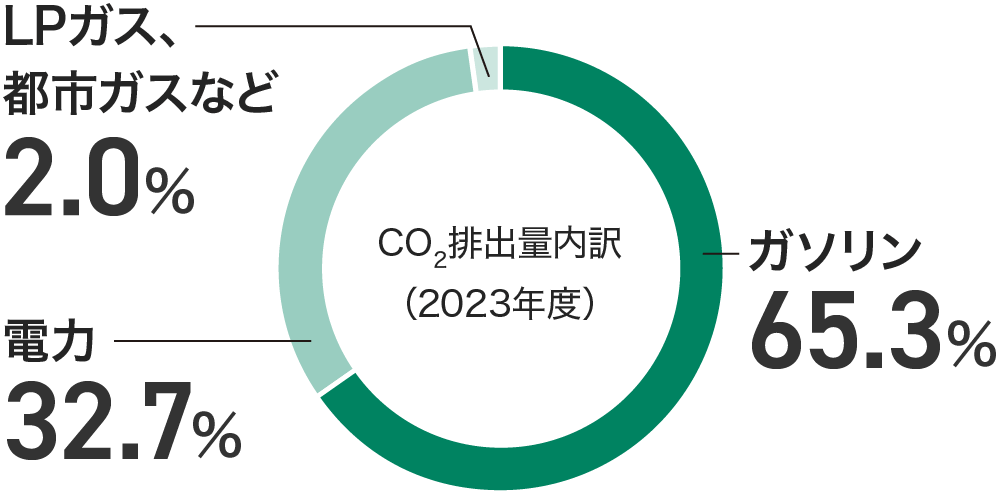 自社の事業活動で使用している電力や車両燃料などのエネルギー量を把握し、CO2排出量を算定しています。