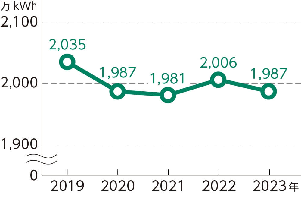 2024年度の電力使用量は、夏季の猛暑など天候の影響がありましたが、全社で節電などの省エネ活動に取り組んだ結果、前年度とほぼ横ばいになりました。