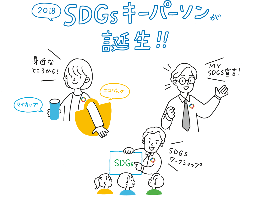 2018年11月、SDGsキーパーソンが誕生しました。社内外にSDGsの活動を推進する役割を持つSDGsキーパーソンは、2024年6月時点で730名にものぼります。毎月の研修で学びを深め、地域やお客様とのパートナーシップのもと、SDGsへの貢献をリードしています。
