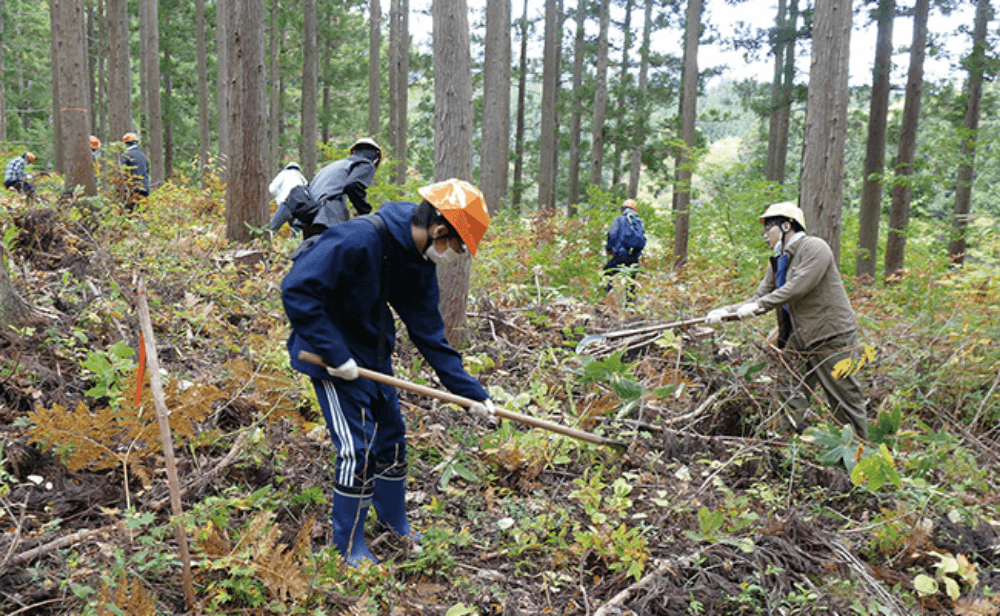2022年8月に山形支社は、山形県、門伝生産森林組合と、やまがた絆の森協働活動事業に関する協定を締結しました。お互いの資源やノウハウを連携し、山形県の豊かな自然を未来に引き継ぐ森林保全活動や、活動を通じた地域の活性化を目指しています。