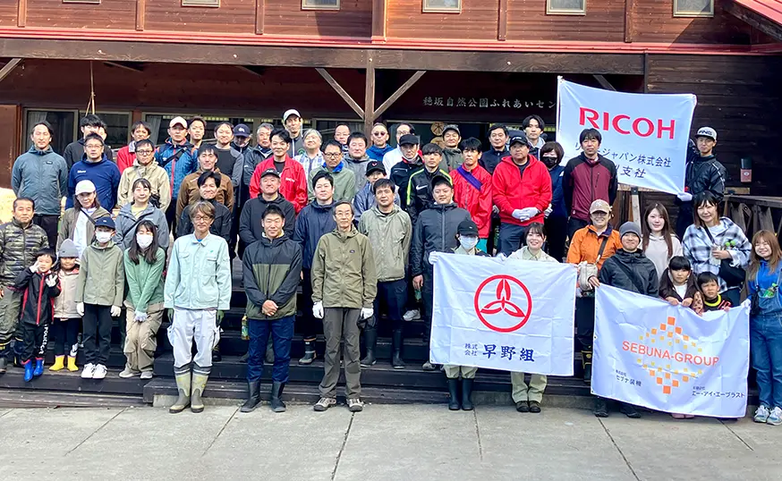リコーグループの生産系関連会社リコーエレメックス恵那事業所の敷地に40ヘクタール以上の森林があり保全活動を行なっています。活動には地元の住民、企業、NPO団体、リコー関連会社が参画。環境保全にとどまらず、次世代育成、コミュニティの活性化および発展に貢献することを目指しています。