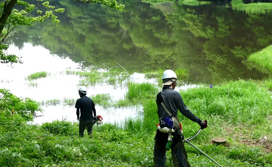 山梨支社では年2回(6月と10月)、韮崎市の甘利山さわら池周辺と穂坂自然公園で森林整備活動を行なっています。主な活動内容は、下草刈り、植樹、林道整備、杭打ち、ウッドデッキの塗装などです。社員およびその家族、そしてこの活動に賛同している地元企業の皆様と長年にわたって取り組んでおり、2024年には森林整備の連携協定を結んでいる韮崎市から善行表彰を受けました。