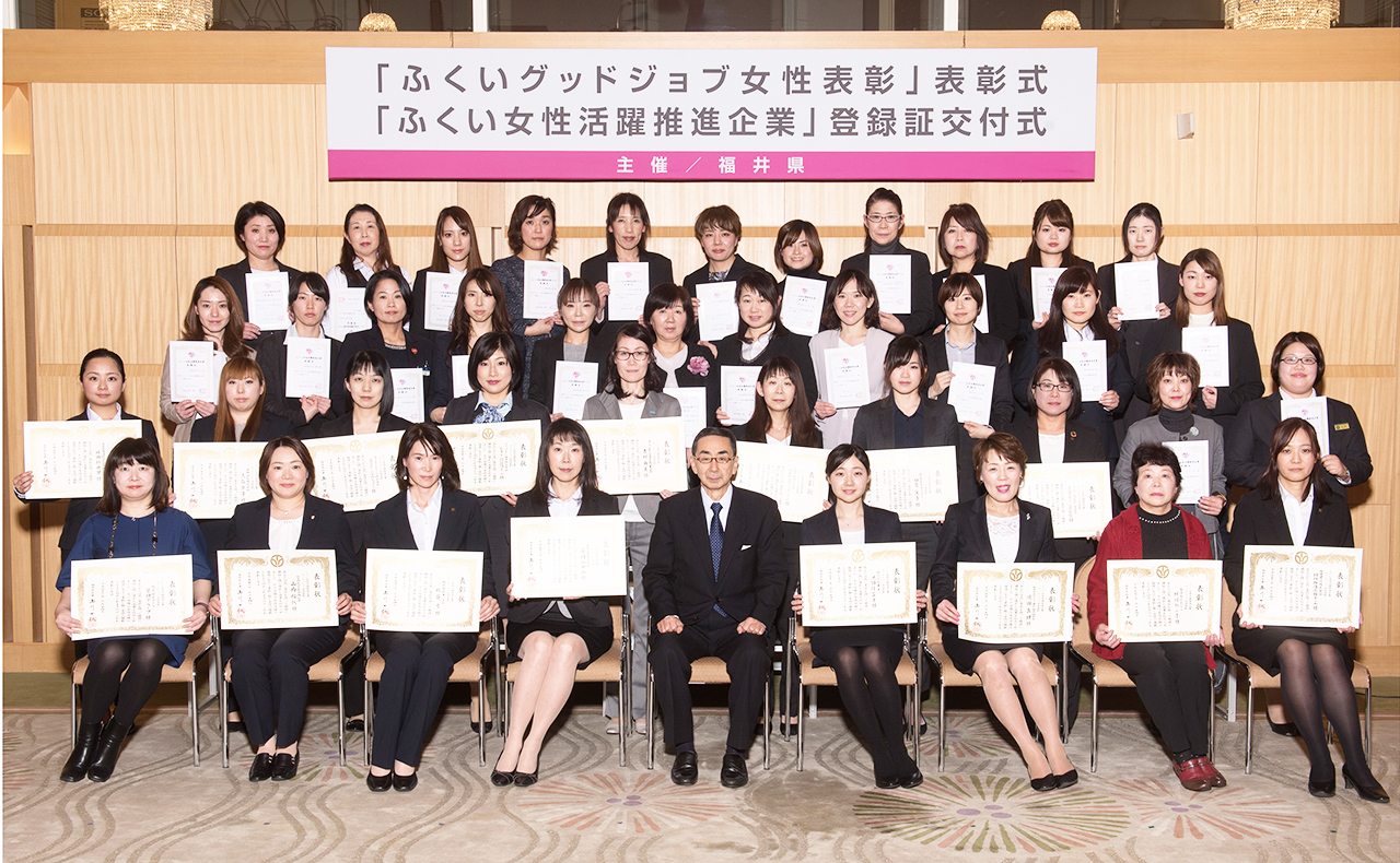 福井県では、商品企画や営業など仕事で優れた成果を上げた女性とその企業を顕彰し、女性が活躍しやすい環境づくりを推進することを目的として、平成27年度から「グッドジョブ女性表彰」を行っており、リコージャパンは昨年に続いて2年連続の受賞となりました。