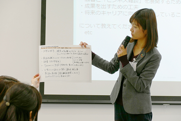 一般社団法人営業部女子課の会代表 太田彩子氏による講演、先輩によるネットワーキングの事例紹介、ワンランク上のエイジョになるためのグループディスカッションを実施しました。