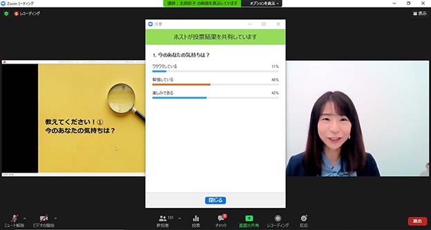 今年度は、Withコロナ時代の変化に適応し、自ら変革するマインドを持つことを目指し、ネットワーキングを行いました。“非対面営業×対面営業”をハイブリッドに使いわける「ニューノーマルな営業スタイル変革」をテーマに、一般社団法人営業部女子課の会代表 太田 彩子氏による講演、現在組織長である先輩エイジョによるオンライン商談の事例紹介、グループディスカッションを実施しました。