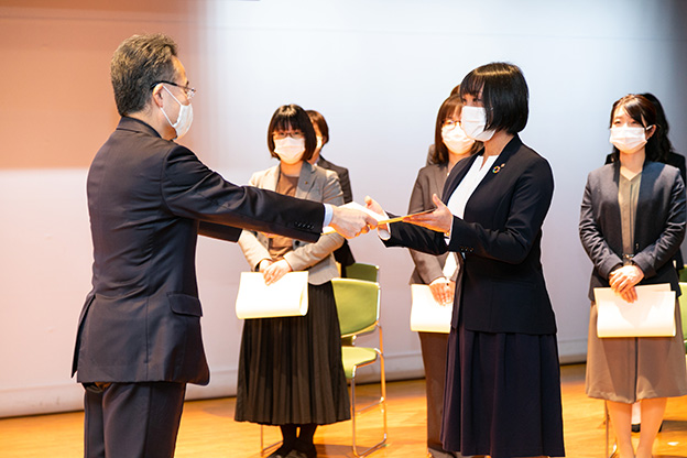 個人部門を受賞した福井支社の金田 美央は、日頃、支社内の採用や営業支援業務、SDGsの正しい知識を持ち支社内外へコミュニケーションするSDGsキーパーソンとして活動しており、このたびは、コロナ禍においてWebを活用した新しい採用スタイルを展開、採用予定数の2倍の内定者を確保したことが評価されました。