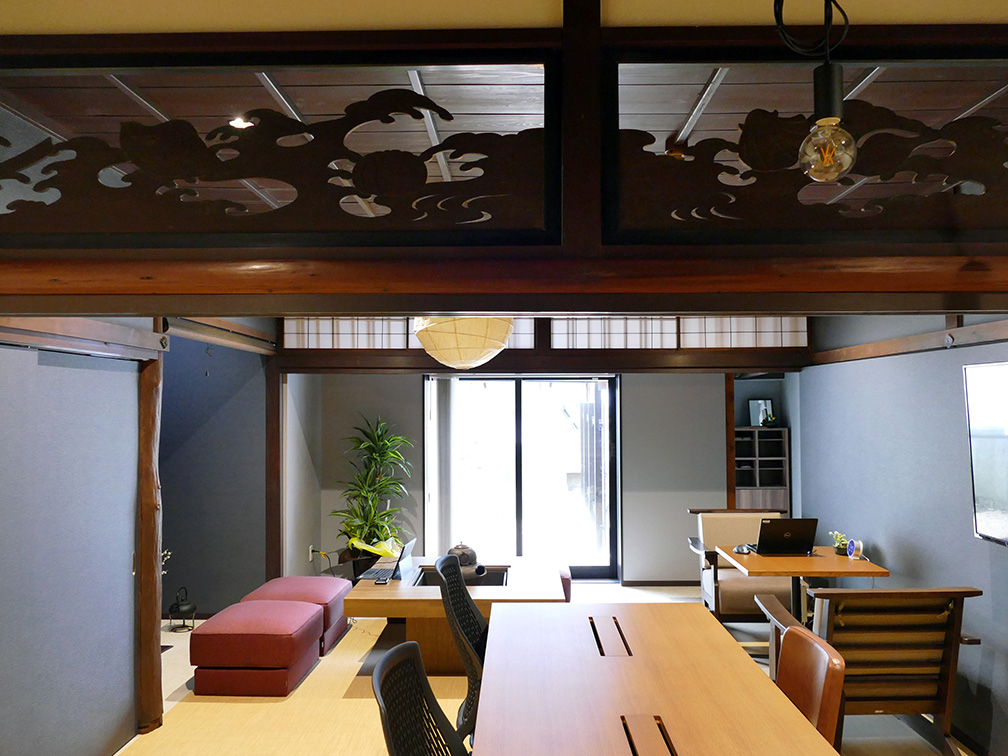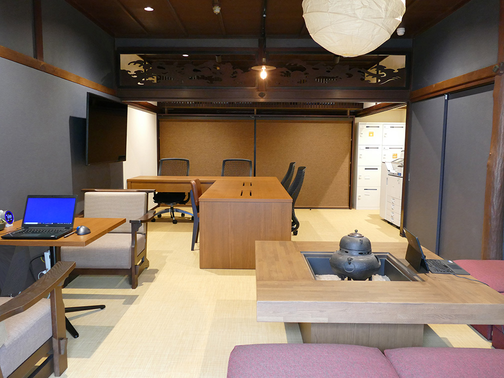 歴史ある萩の風土と共に伝統ある味を守り続けている醤油会社が明治43年に設立した店舗の一部を改修して自社のオフィスデザイン、最新のICTの技術でデジタルワークプレイスとして活用していきます。新オフィスは、社員が働きやすい環境を整備しただけでなく、居室内に囲炉裏を配置するなど、古民家の香りを残しています。