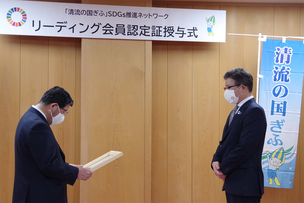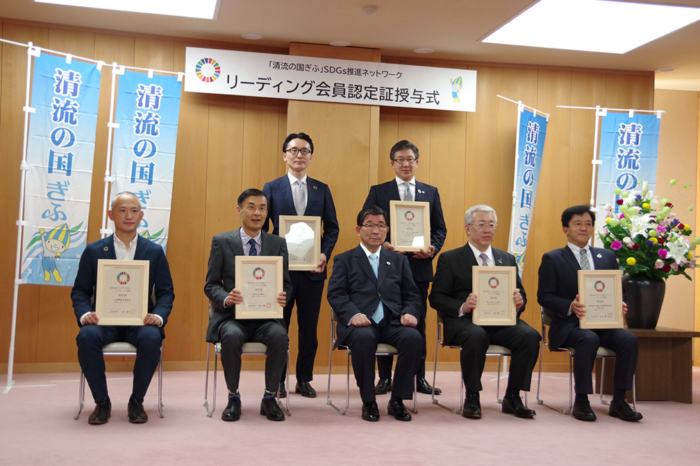 岐阜県では、SDGsの達成に向けて県内の企業や団体、NPO、個人などによる多様な主体が連携し、SDGsを原動力として地方創生の実現を目指す「オール岐阜」の組織として、令和2年4月に「『清流の国ぎふ』SDGs推進ネットワーク」を設立。現在、会員数800を超える同ネットワークにおける会員間の連携強化と活動の活性化を図るため、SDGsの達成に向けた取組みが顕著であり、他の会員をけん引する役割を担い、県とともに県内のSDGsの取組みの輪を広げていくリーディング会員を認定する制度を新たに設け、10月14日から2年間の任期で6業者を認定しました。