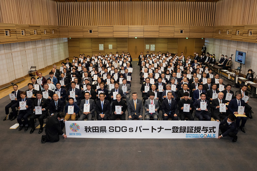 秋田県では、令和3年9月、事業活動などを通じてSDGsの達成に意欲的に取り組む県内の企業や団体、自治体等を登録・PRする秋田県独自の制度「秋田県SDGsパートナー登録制度」を創設しました。この制度は、SDGsを推進する県内企業等の取組を広く周知することにより、登録を受けた企業等の連携促進、企業価値の向上、競争力の強化等を通じた県内におけるSDGsの普及、自律的好循環の形成につなげ、官民一体となってSDGsを原動力とした持続可能な地域社会の実現を図ることを目的とします。