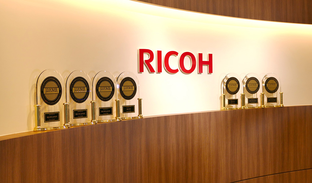 12月20日(月)、リコージャパン本社事業所において、株式会社J.D. パワー ジャパン(略称:J.D. パワー)が実施した顧客満足度調査で第1位と評価された7分野について、J.D. パワー社の山本 浩二 代表取締役社長から、評価結果に対するご祝辞とともに、担当役員にトロフィーが授与されました。