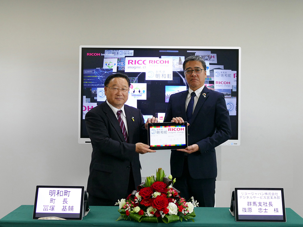 左から)明和町 冨塚 基輔 町長、リコージャパン 群馬支社長 篠原 忠士