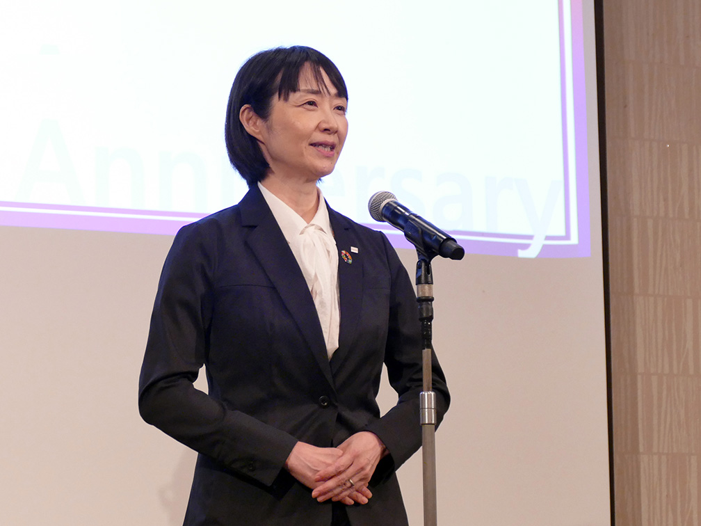 スピーチをする経営企画本部 人財開発センター 能力開発企画室長の辻井 葉子