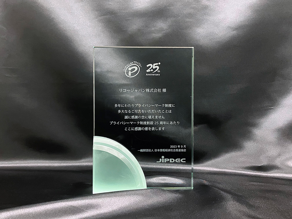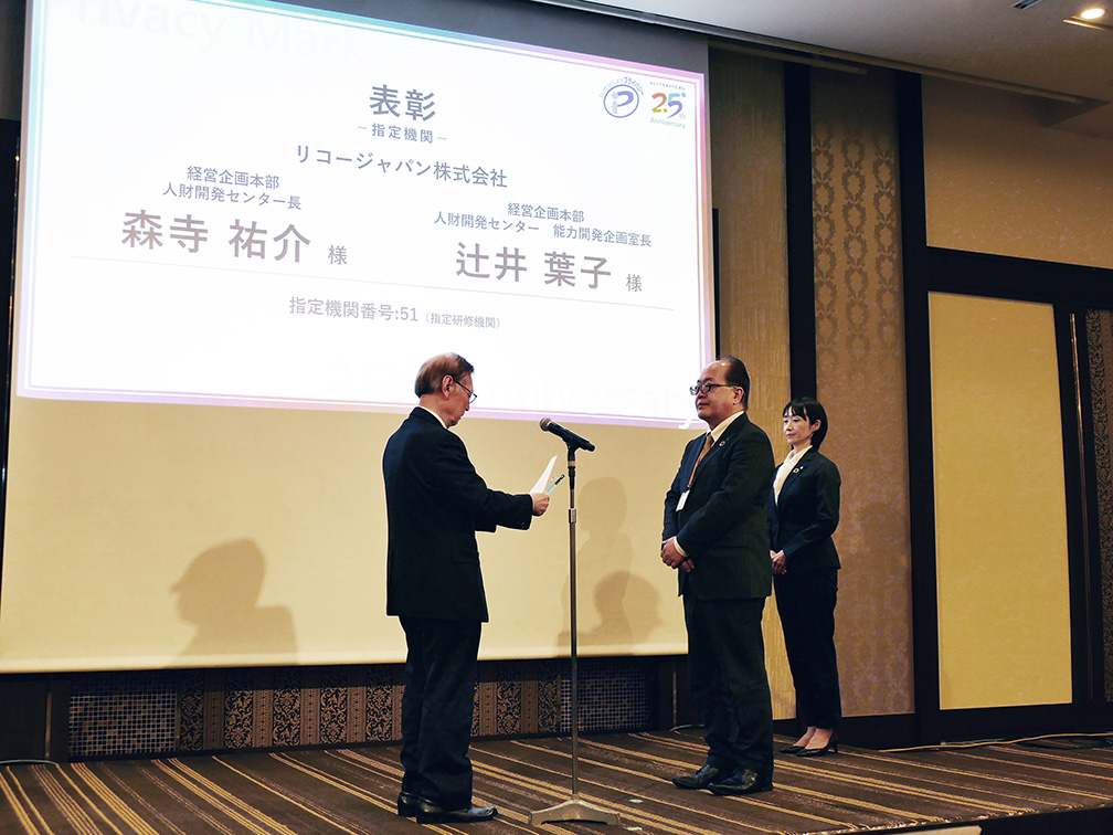 リコージャパン株式会社は、このたび一般財団法人日本情報経済社会推進協会(JIPDEC)からプライバシーマーク制度創設25周年にあたり⼀般研修機関として表彰されました。
