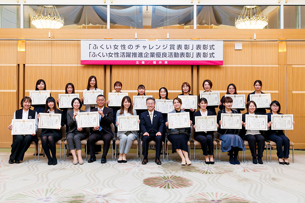 福井県では、県の長期ビジョンに掲げる“男女が互いに尊重しあう「男女共生社会」”の実現のため、「ふくい女性活躍推進企業」として登録した企業を対象に、特に優れた活動を実施する企業や従業員、および様々な分野で活躍する個人、団体・グループを表彰しています。