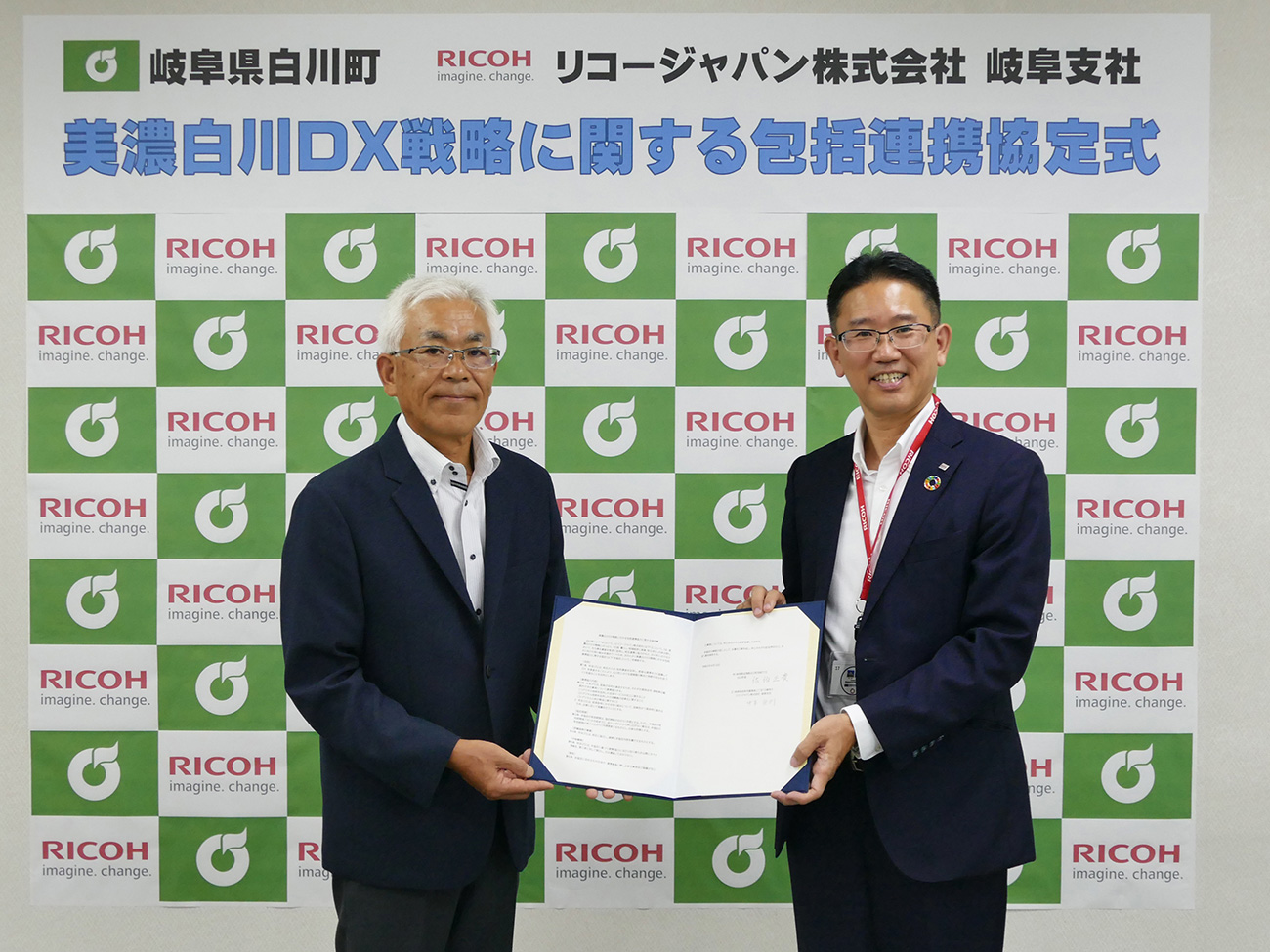 リコージャパン株式会社 岐阜支社(支社長:中本 宗利)は、9月18日に岐阜県白川町(町長:佐伯 正貴)と美濃白川DX戦略にかかる包括連携協力に関する協定を締結しました。リコーグループが岐阜県の自治体と協定を締結するのは初となります。