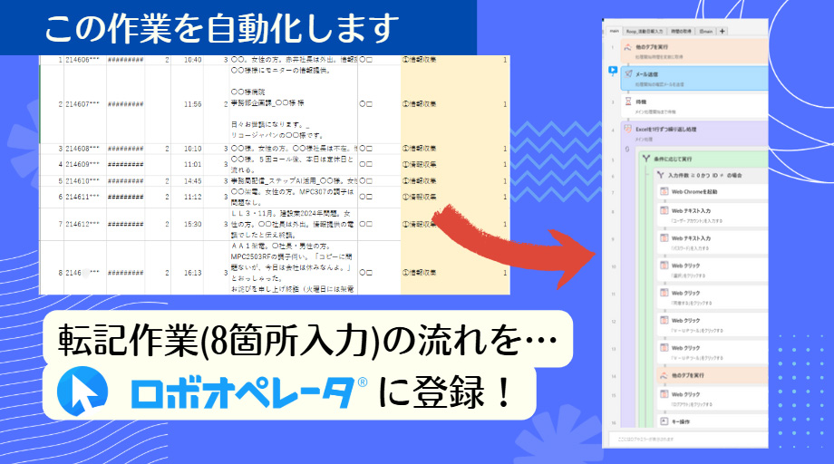 業務の流れをそのままシナリオとして「ロボオペレータ」に落とし込むことができるため、広島支社ではさまざまな業務を自動化しました。
