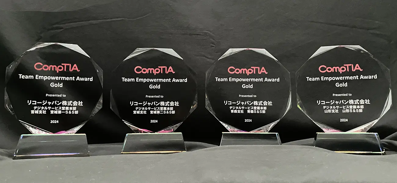 リコージャパン株式会社は、CompTIA, Inc.のCompTIA日本支局(本部:米国イリノイ州/日本支局長 Peter Schalkwijk)が主催する、「2024年度CompTIA Team Empowerment Award」において、以下の4組織が「CompTIA Team Empowerment Award Gold」に認定されたことをお知らせします。