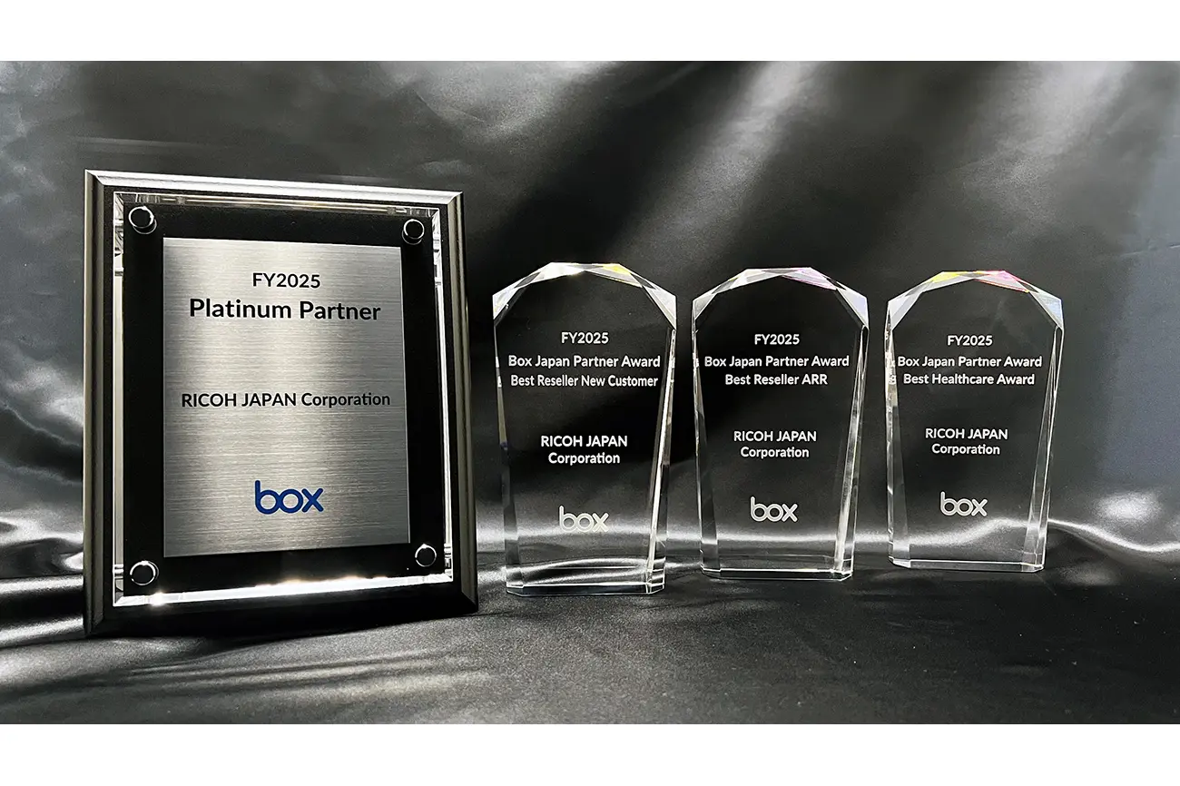 リコージャパン株式会社は、株式会社Box Japan(以下、Box Japan)によるパートナー企業を対象とした表彰制度「FY2025 Box Japan Partner Award」において、2025会計年度のBox Japan社製品の受注件数や新規案件のクローズ数などが評価され、下記の3賞を受賞しました。さらにエンタープライズ事業本部の鈴木 政幸が、「Partner Award個人賞」を受賞しました。