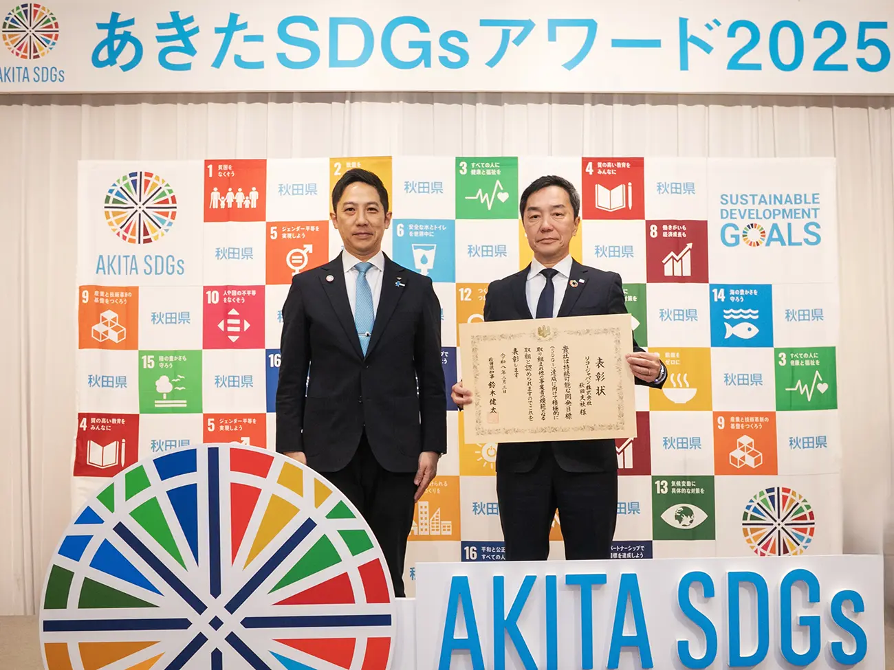 表彰式は、2026年2月3日に開催され、秋田県 鈴木 健太 知事より表彰状が授与されました。