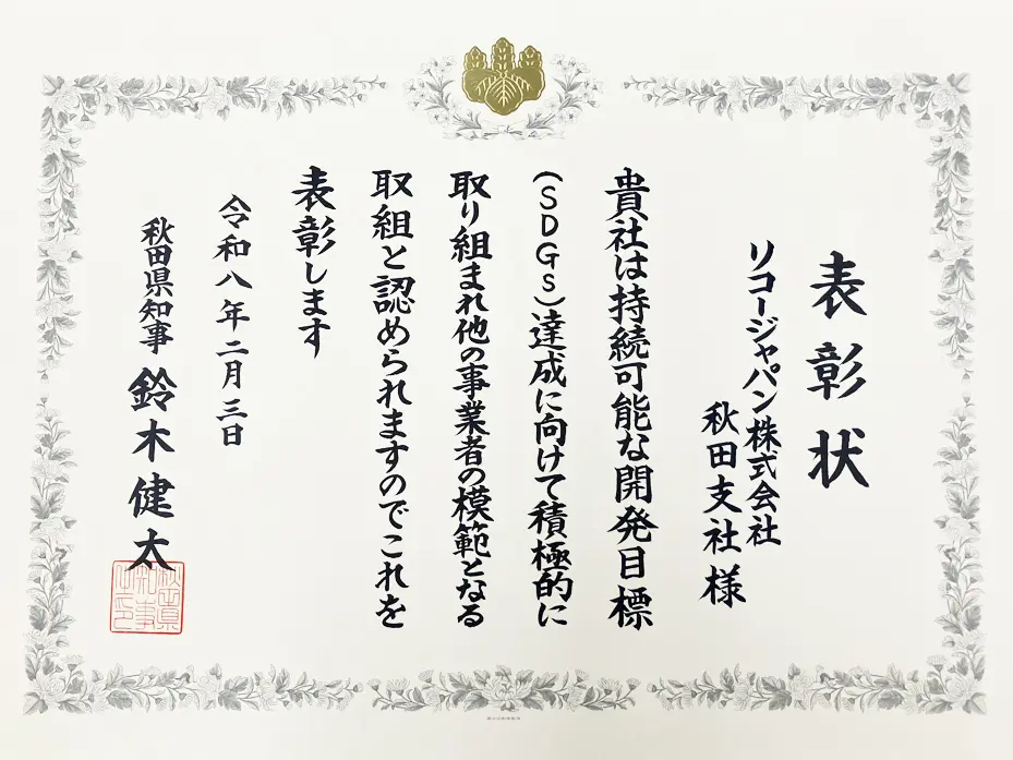 リコージャパン株式会社 秋田支社は、秋田県が主催する「あきたSDGsアワード2025」を受賞したことをお知らせいたします。