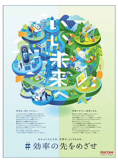 株式会社リコー(社長執行役員:大山 晃)は、昨年の「勤労感謝の日」に日本経済新聞朝刊において、「#効率の先をめざせ」というキャッチコピーとともに、ユニークなビジュアルで表現した「いい未来へ。」という15段(全面)広告を2面にわたり掲載しました。このたび本広告が、一般社団法人 日本BtoB広告協会による第45回日本BtoB広告賞において、新聞広告の部で金賞を受賞しましたのでお知らせします。