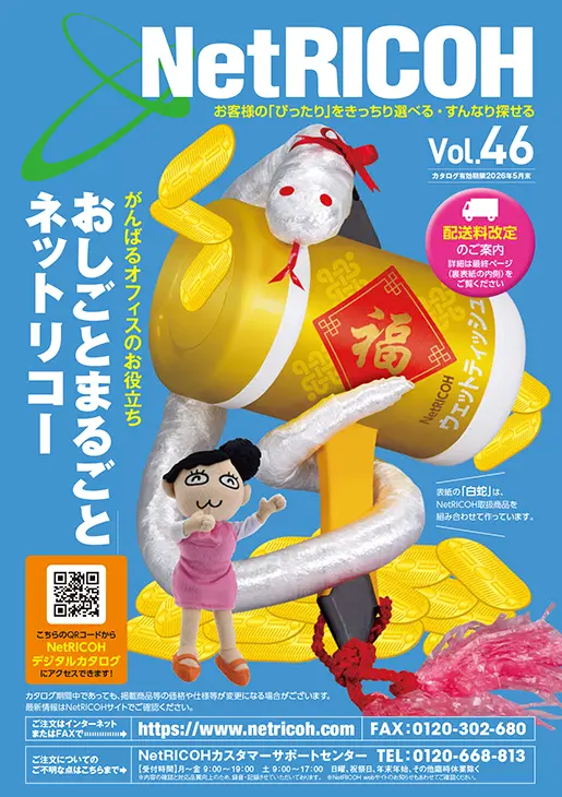 リコージャパン株式会社(社長執行役員:笠井 徹)は、総合インターネットサービス「NetRICOH(ネットリコー)」のオンラインショッピングで提供するOAサプライや文具・事務用品、オフィス生活用品、パソコン関連用品、事務機器など約25,000点を掲載したオフィス通販カタログ「NetRICOHカタログ Vol.46」を5月29日に発刊します。