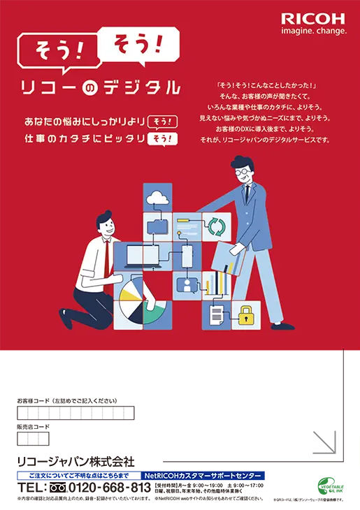 なお、インターネット環境が整っていない場面などでは本カタログをご活用いただき、状況に応じて、本カタログとNetRICOHサイトを使い分けていただくことで、よりスムーズなお買い物が可能です。