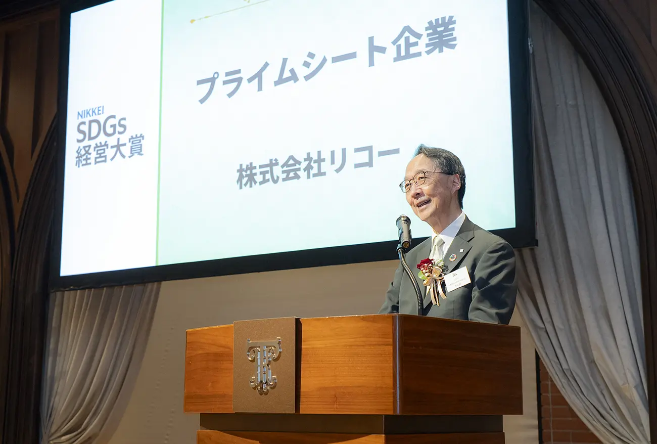 株式会社リコーは、日本経済新聞社の2025年度「日経サステナブル総合調査 SDGs経営編」において、7年連続で最上位の「星5(偏差値70以上)」を獲得しました。また、この調査結果をもとにSDGsに貢献する先進企業を表彰する「日経SDGs経営大賞」において「プライムシート企業」に認定され、2025年11月27日に表彰式が行われました。