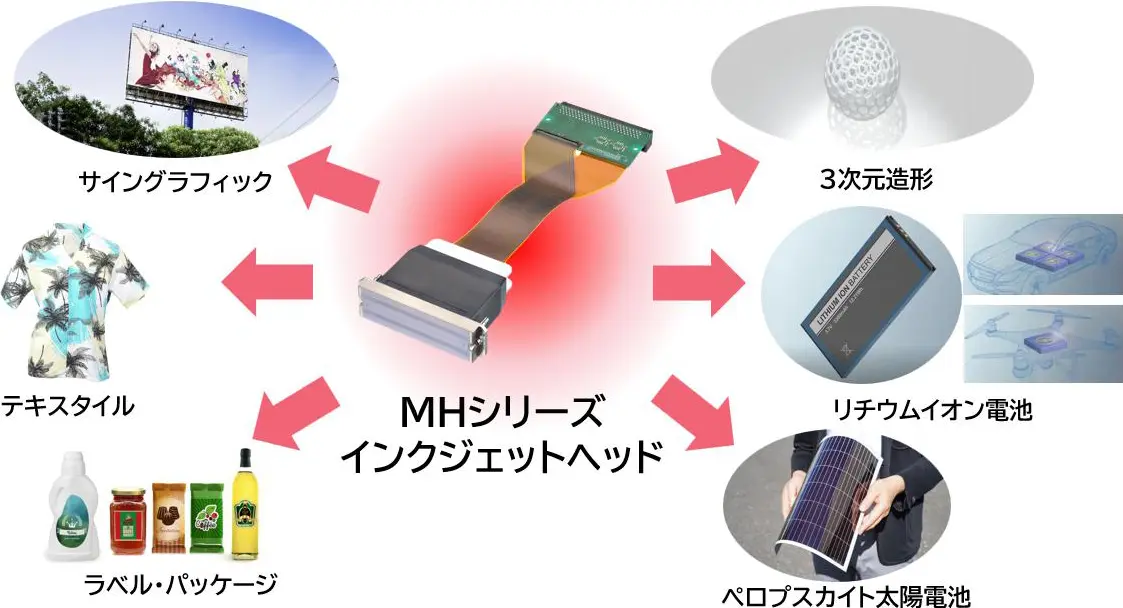 本技術は、ワイドフォーマットプリンターへの搭載にとどまらず、ラベル・パッケージ、環境負荷の少ないデジタル捺染などの産業用印刷や、3D造形・配線パターン形成などの工業用印刷分野にも活用されています。さらに、リチウムイオン二次電池やペロブスカイト太陽電池の製造への応用も進んでおり、持続可能な社会の実現に貢献していきます。