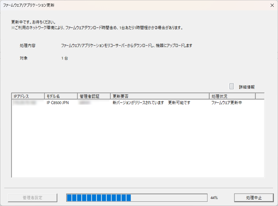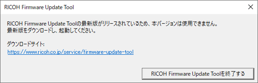 https://www.ricoh.co.jp/products/list/ricoh-firmware-update-toolRICOH Firmware Update Toolを起動すると最新版が公開されている通知が表示されます。表示されたリンク先から最新版をダウンロードいただくことも可能です。
