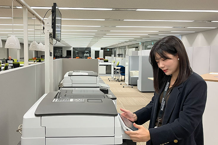 大学で学んだ経営学や英語を活かせる職種があること、さらに、大学でSDGsについて学び、仕事を通じて社会課題解決に貢献したいと考えていため、リコーの企業理念に共感できた点も後押しになりました。