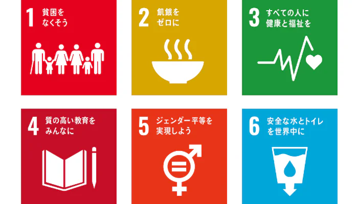1〜6は誰もが安心して暮らすための目標が定められています。開発途上国だけでなく、日本を含めた先進国にも当てはまる課題で、詳細は以下のとおりです。