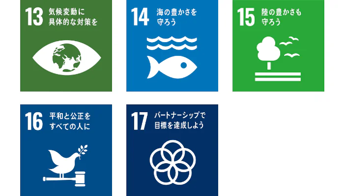 気候変動や海・陸の豊かさ、平和など、開発途上国や先進国の枠を超えた包括的な目標が定められています。