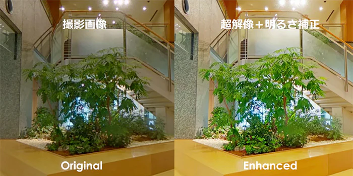 左が撮影画像、右がAIによる明るさ補正後の画像