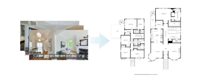 グローバル展開を想定して展開されたのが、クラウドサービス「RICOH360 Tours」だ。THETAとアプリを使い高画質なプロモーション動画「360°パノラマツアー」を制作、オンラインに公開できる。部屋にCGで家具を配置して生活環境をイメージできる「AIステージング」や、間取り図の自動作成など、役立つ機能を備えている。