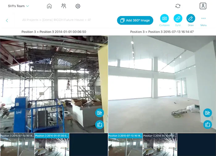 「RICOH360 Projects」での建設現場の共有画面イメージ
